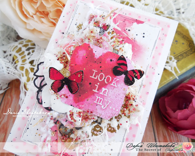 Моя открытка - валентика опять наполнена красками, эмоциями и слоями из кружева, вырубки и цветов...